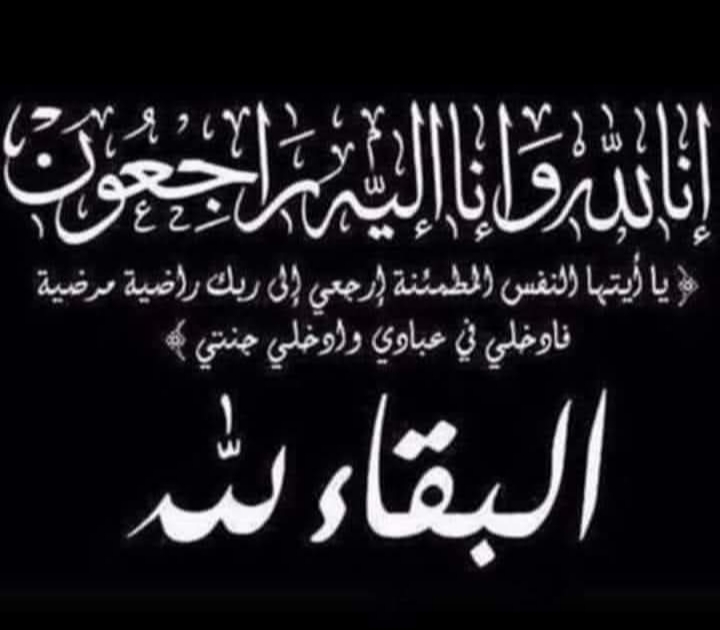 بقلوب مؤمنة بقضاء الله وقدره تلقينا ببالغ الحزن والاسى نبأ وفاة جارتنا والمسماة قيد حياتها ايمان حجي يوم الاثنين 16 يونيو 2025 وبهذه المناسبة الأليمة يتقدم طاقم جريدة وموقع عين الحدث باسم مديرها السيد احمد كوصي باحر التعازي والمواساة لكل من والدتها واخواتها وجميع افراد العائلة كل واحد بإسمه راجين من العلي القدير أن يتغمد الفقيدة بواسع رحمته وان يلهم الجميع الصبر والسلوان وان لله وانا اليه راجعون. البقاء لله.