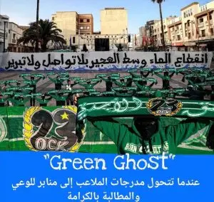 في مشهد رمزي قوي، يعكس وعيًا متصاعدًا داخل فصائل الألتراس بمدينة خريبكة، قام فصيل Green Ghost برفع لافتة احتجاجية وسط ساحة المجاهدين وأمام المنصة الرسمية التي أُقيمت ضمن فعاليات “الأيام الثقافية والفنية والرياضية” التي يشرف عليها المجلس البلدي للمدينة