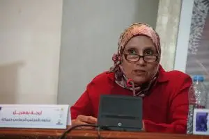 أما مداخلة الأستاذة إيجة بومزيل مستشارة بجماعة خريبكة: والتي بدأتها بدكر تطور مشاركة النساء بدءا من دستور المملكة لسنة 2011 وما جاء به من مواد مساعدة على ذلك منوهة في الوقت ذاته بزيادة عدد المستشارات في المجالس التداولية وحضور المرأة في التعينات بالمناصب العليا والاعتراف بالكفاءات النسائية بالاعتماد على القانون الخاص بالمساواة بين الرجال والنساء، ناهيك عن القوانين الانتخابية المؤطرة وتواجد النساء في الأحزاب السياسية الذي يعد مدخلا أساسيا لتشجيع المرأة في الانخراط في العمل السياسي لا سيما وأن المغرب في طور التنمية وفي طور الانتقال الديمقراطي وهذا طبعا يتطلب نوعا من الترافع والتدرج والارتكاز على التكوين والتأطير السياسي للمرأة وتحقيق مبدأ المساواة وتسجيل المرأة القوائم واللوائح الانتخابية وترشيحها في الدوائر الانتخابية ووضعها على رأس اللوائح الانتخابية على غرار أخيها الرجل من أجل تعزيز الديمقراطية والتعددية وهذا يعكس نضج الديمقراطية في المغرب مع الحرص على تربية المرأة داخل الأحزاب السياسية ومن متاعبها تخرج للمسؤولية وفي الأخير طالبت المتدخلة ذاتها بضرورة ترسيخ مبدأ المساواة الدستورية لتحسيين صورة المغرب دوليا.