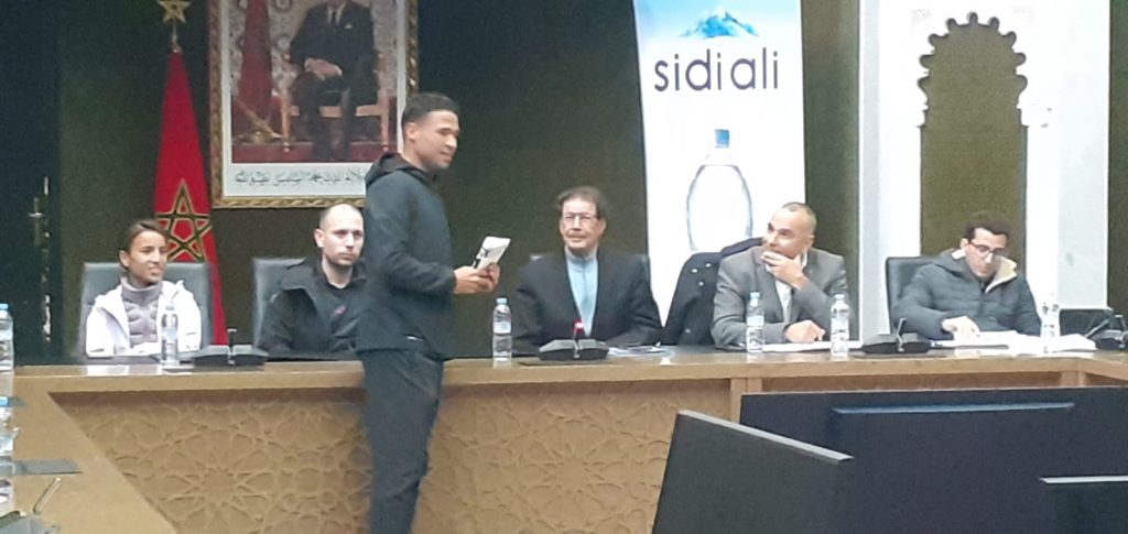في رحاب قصر بلدية مراكش عقدت ندوة صحفية زوال يوم السبت 24 يناير لتقديم الابطال المغاربة والاجانب الذين سيشاركون في النسخة 36 للماراطون الدولي الذي ستعطى انطلاقته صبيحة يوم الاحد 25 الشهر الجاري بمدينة النخيل