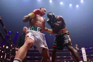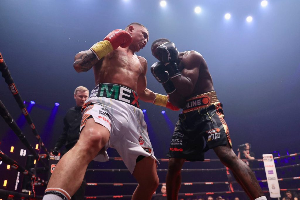وتمكن الملاكم الروسي بافيل سوسولين من الحفاظ على سجله الخالي من الهزائم بعدما حقق فوزاً بالضربة الفنية القاضية على منافسه فيكتور ناغبي في النزال الرئيسي ضمن فئة وزن فوق الوسط.