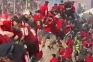 وقد تمثلت هذه الأحداث في قيام عدد من المشجعين بأعمال تخريب داخل المدرجات، ورشق أرضية الملعب بالمقذوفات، إضافة إلى محاولات اقتحام أرضية الميدان، مما تسبب في حالة من الفوضى والهلع، وأدى إلى تسجيل إصابات في صفوف بعض الحاضرين، من بينهم أحد ممثلي وسائل الإعلام.